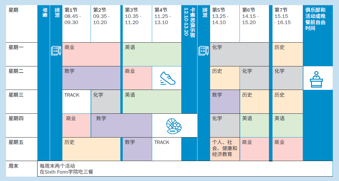 国际学习中心的课程表样例: